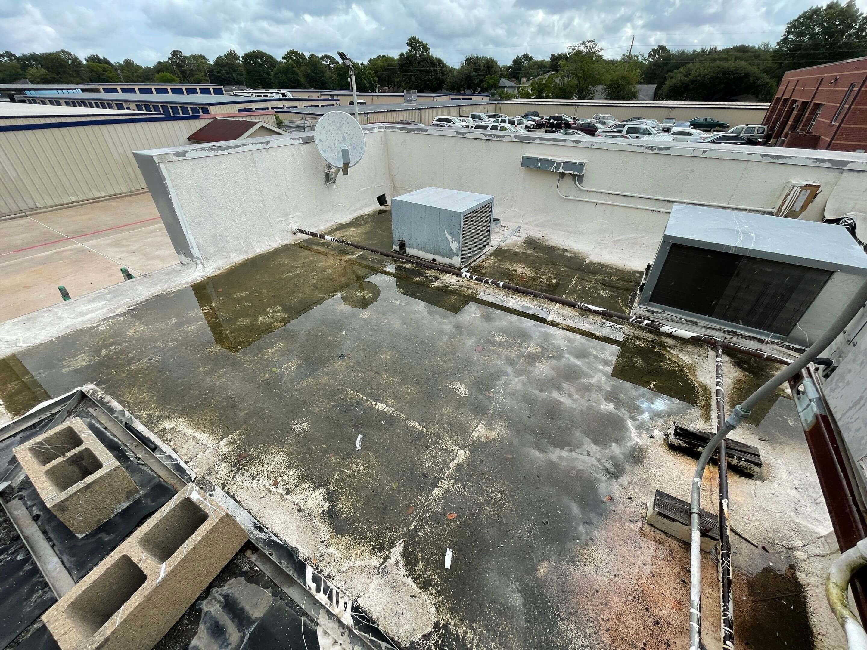 Ponding water examples on flat roof